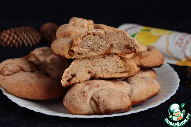 Символ наступающего года, шишечки для декора и лимонный джем. С джемом у Ларисы представлен Пирог "Две любви". У нас получилась одна любовь И муки мне не хватило, пришлось добавить цельнозерновой и при формовке она меня немного подвела, при выпечке джем потек. Но все равно было вкусно! Я делала 4 маленьких.