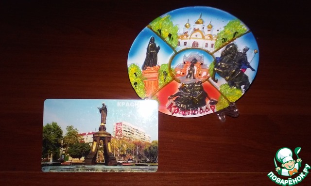 А теперь главный атрибут -минипанорама на декоративной тарелочке и магнитик красивейшего города Краснодара.