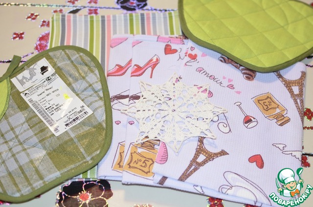 4. Целая гора красивых полотенчика, прихваток. И очень милая салфеточка ручной работы!