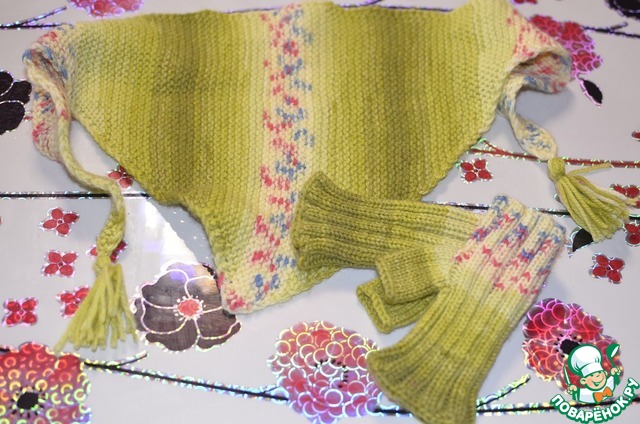 5. Прикольная вязанная косыночка и рукавички для средней доченьки.