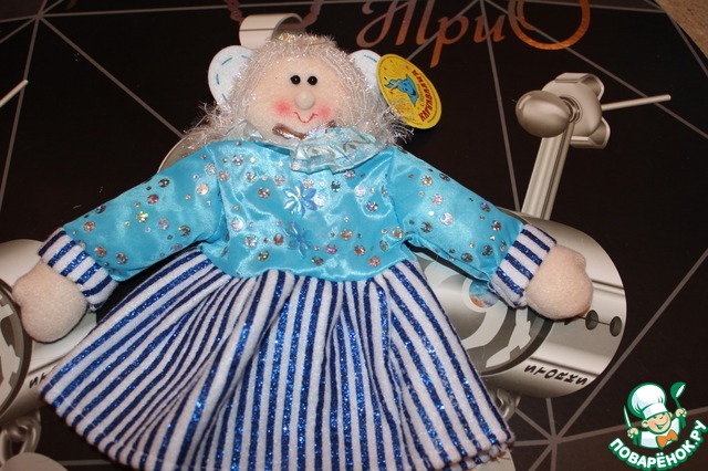 А вот с этим подарком мы насмеялись от души! Когда я открыла посылку, увидела этцу куколку! Я так расстроилась, потому что голова у нее лежала в одной стороне а платье в другой! Я подумала, что куколка поломалась и собралась ей пришить голову чтоб она была целой! И каково было наше удивление, когда я почитала Олино письмо!!!!!!! Эта куколка оказалась нарядкой для бутылки!!!!!! Ахахахахахах!!!!! Вот я лох!!!!! Я же ей чуть голову не пришила!!!!