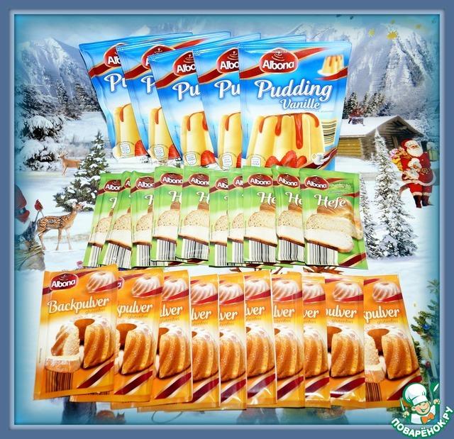И так это - ванильный пуддинг, дрожжи, Пекарский порошок без глютена - все в ближайшее время испытаю. Я постоянно делаю хлеб в хлебопечке - дрожжи просто улетают - очень нужная вещь - посмотрим какие они - немецкие дрожжи - никогда еще не пробовала)))