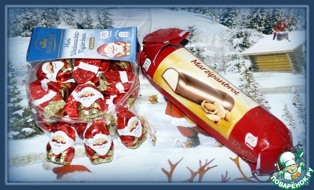 Эта гигантская марципановая конфета сразила меня наповал - такое я еще не пробовала!!! А Дед Морозики - просто прелесть(оставила на Новый Год)))