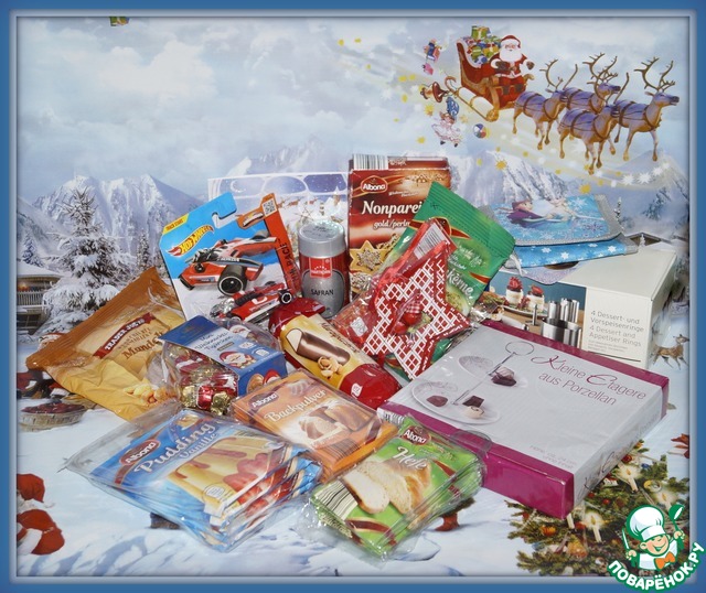 Вот и ко мне прискакали самые лучшие волшебные олени и привезли прекрасные подарочки!!! А послала их ко мне очень внимательная и добрая Снегурочка - Инга (Кир Рояль http://kir-rojal.povarenok.ru/) - за что ей огромная благодарность!!!