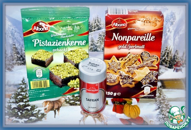 Рубленные фисташки, Шафран, Кондитерская посыпка... Это все такое классное и нужное... Еще был измельченный мендаль - большой пакетик, но там упаковка чуть порвалась и я пересыпала в баночку - у нас такого я не видела - отдельное спасибо!!!