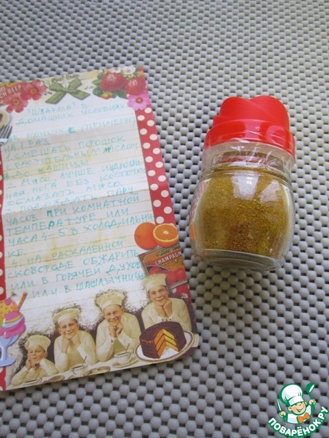 Чудеснейшую баночку со специями для шаурмы с подробнейшим рецептом приготовления этого блюда.