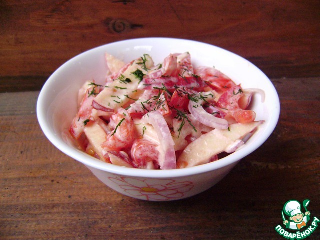Очень интересное сочетание. Вкусный и сочный салатик получился.