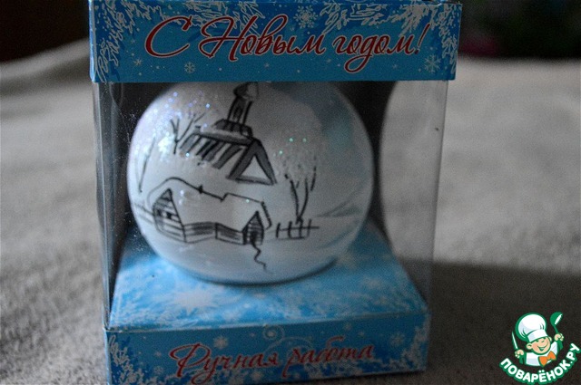Дополнительный элемент декора для нашей елочки - новогодний елочный шар из стекла с зимним пейзажем.