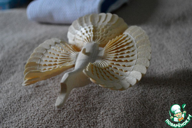 А еще Катя прислала нам резную из дерева птицу счастья. Когда дочка ее увидела, аж запищала от восторга!!!! И на нас с мужем эта птичка произвела неизгладимое впечатление. Мы все ее крутили и разглядывали, и долго спорили куда же ее повесить. В итоге, дочь практически шантажом и угрозами