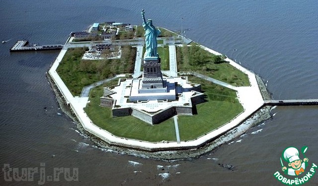 В середине 17 века остров стал собственностью И. Бедлоу и, естественно, стал именоваться Bedloe’s Island – остров Бедлоус. Через столетие он перешел в собственность властей Нью-Йорка, а чуть позже на нем появился форт Вуд, имеющий форму 11-конечной звезды. На нем в 1886 году и установили знаменитую Статую Свободы – подарок французов к 100-летнему юбилею американской революции. Леди Свобода должна была приветствовать иммигрантов, которые прибывали на остров Эллис, расположенный неподалеку.