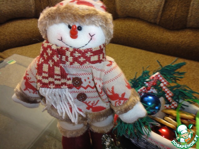 А в нем чудесная новогодняя корзиночка с игрушками и сладостями!