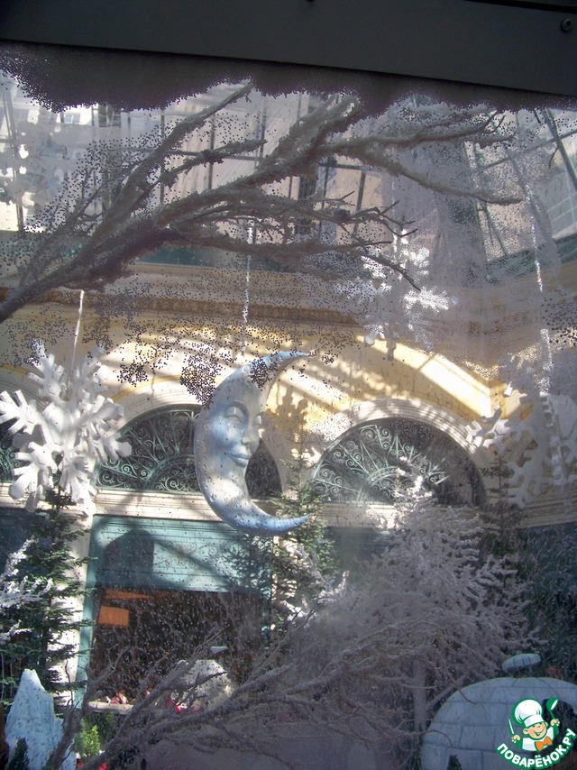 Холл отеля Bellagio. Обратите внимание на потолок. Красиво, не правда ли?