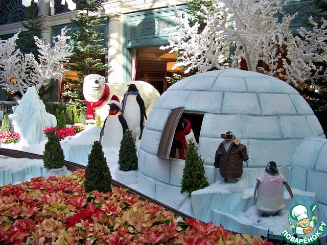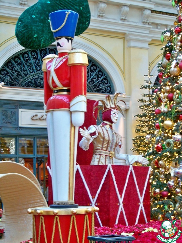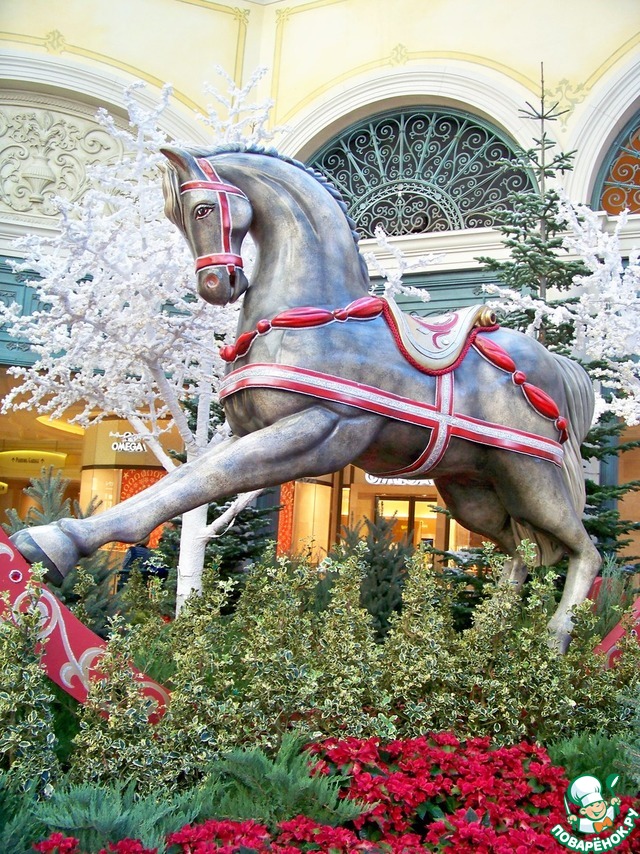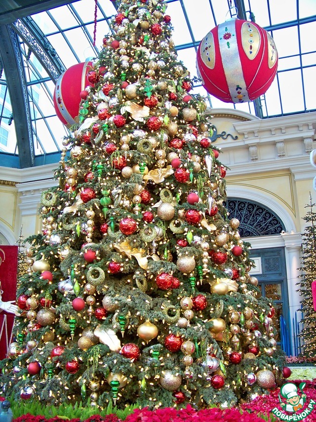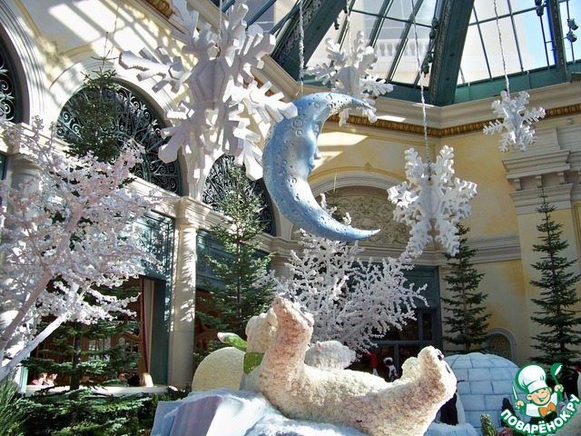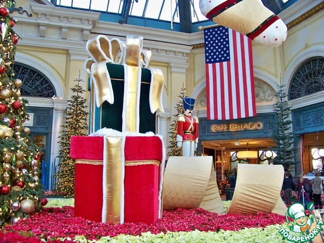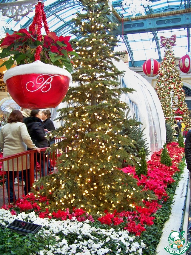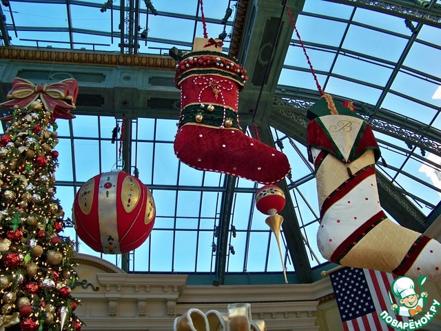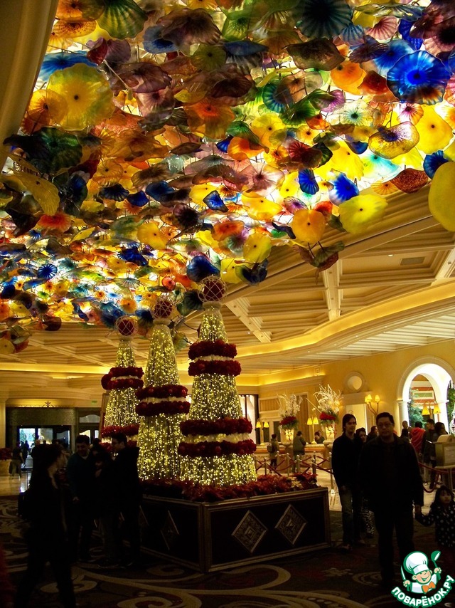 Холл отеля Bellagio. Обратите внимание на потолок. Красиво, не правда ли?