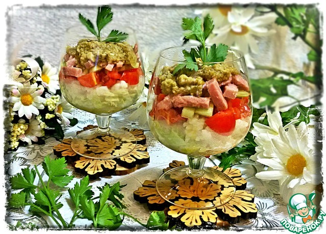 Каперсы на огурчики поменяла, а бекон на колбаску Очень понравился мне салатик, сочетание ингредиентов интересные и получается вкусно