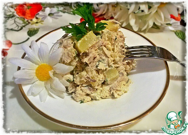 Салатик получается действительно пикантный за счет заправки Вкус очень интересный, такой впервые пробовала Даже мне, не особому любителю такой рыбы, понравился салат Сочетание отличное