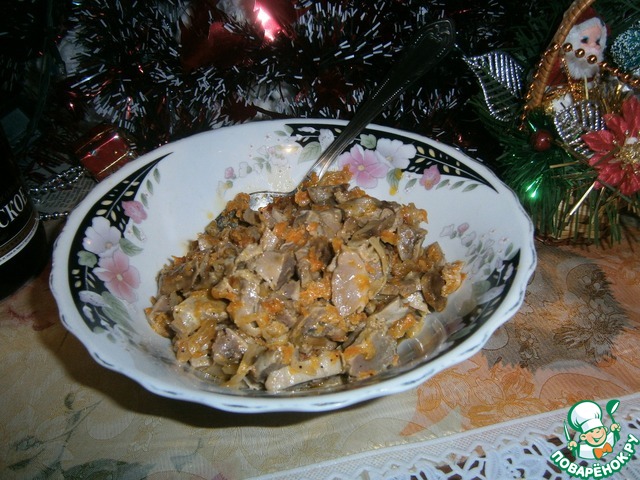 Теплый салат из куриных желудочков от LNataly https://www.povarenok.ru/recipes/show/110768/