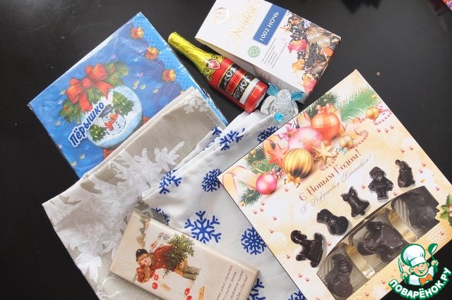 Чудесные новогодние салфеточки, вкуснейший чай, потрясающие салфеточки с забавными снеговичками, шоколад и шоколадные конфеты, а еще любовно и тщательной завернутый стеклянный ангелочек!!!