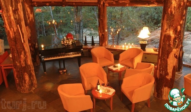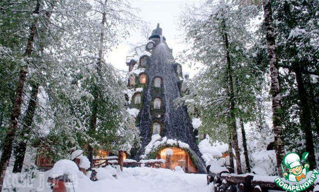 Столь оригинальный дизайн отеля связан с местной легендой о существовании в диких лесах Патагонии волшебной горы, исполняющей желания всех, кто на ней очутится.