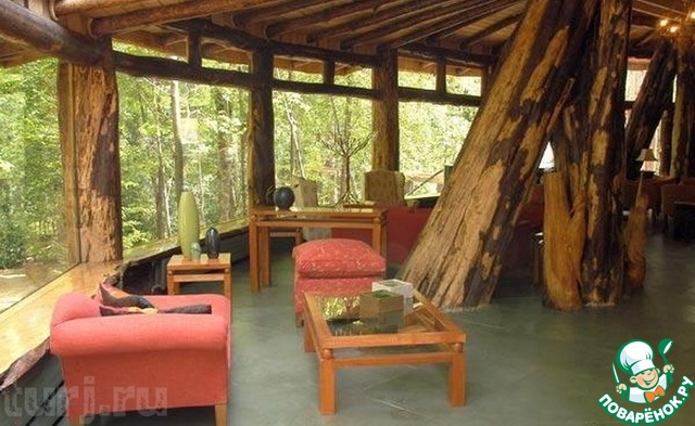 На исполнение если не всех, то многих своих желания могут рассчитывать и постояльцы необычного отеля. Здесь их ждут 13 комфортабельных номеров с огромными окнами, из которых открывается удивительная панорама тропического леса, джакузи, сауна, бар и ресторан. А еще – вышколенный обслуживающий персонал, который и исполняет роль сказочной горы, выполняющей желания.