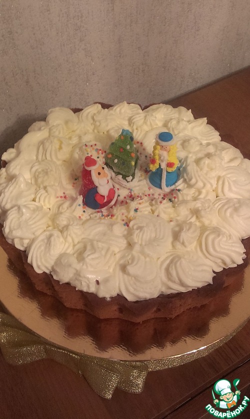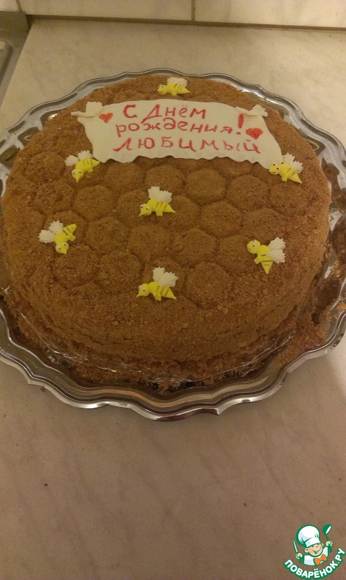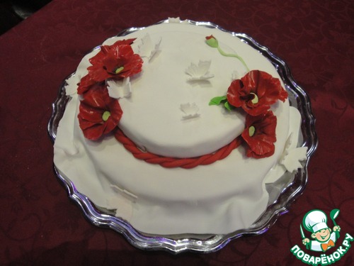 Последний лист и бока покрыть масляным кремом (масло с сахарной пудрой) и покрыть мастикой либо засыпать крошкой.