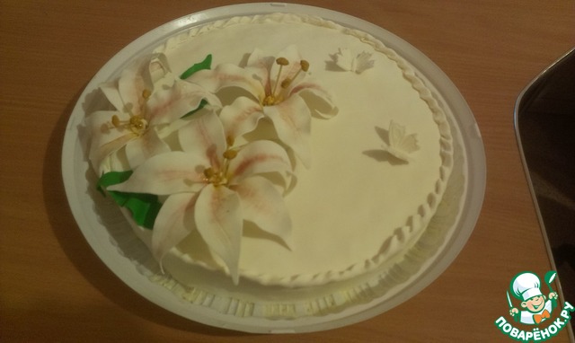 Торт "Бархат ананаса" , оформление: лилии из мастики