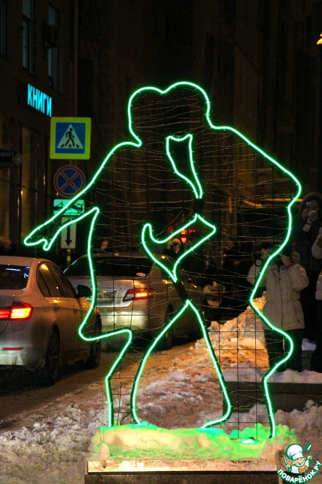 По всей улице Большая Дмитровка были развешаны и расставлены светящиеся фигурки танцующих пар.
