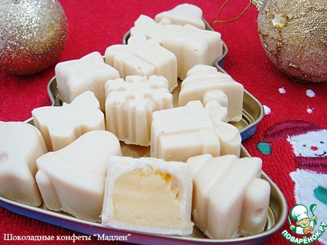 А конфеты - настоящее наслаждение! Какое удовольствие - попить с ними чай! Правда, конфеты у меня в форме елочек, снежинок, колокольчиков и бабочек. Но это - очень-очень вкусно!