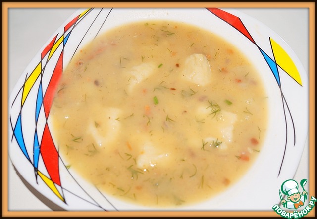 Гороховый суп с чесночными рулетиками от Оли lelikloves. Бледноватый получился,но вкууусный! Рулетики очень хорошо вписались.