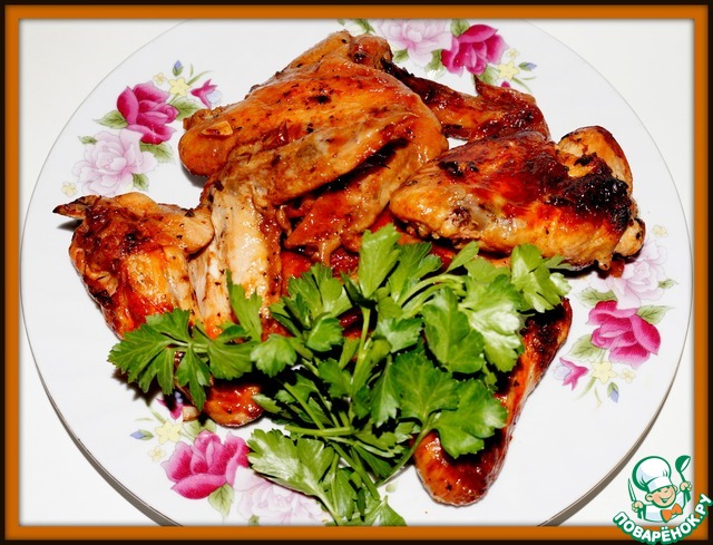 Окорочка "Проще некуда" от Оли Демурия . Делаю не первый раз,прекрасный рецепт,действительно нехлопотно,и очень вкусно.Делала уже все части курицы,какие только можно,а сегодня вот крылышки.
