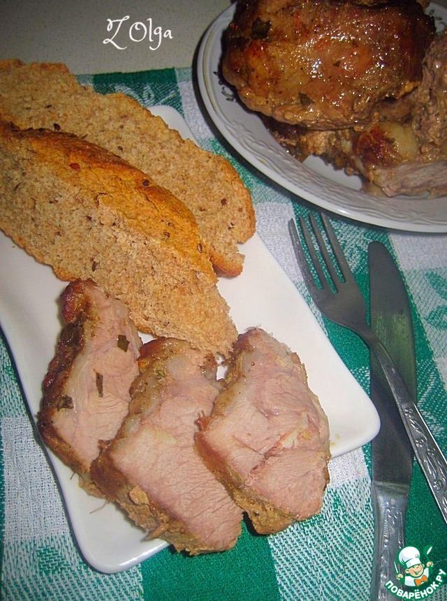 «Свиная грудинка запеченная» https://www.povarenok.ru/recipes/show/116805/ по рецепту Алены Mamita SI! У меня была не грудинка, а просто хороший такой кусочек свининки! Как раз, чтобы запечь! Мясо получилось нежным и очень сочным, ароматным!