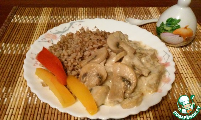 Гречка с подливой из шампиньонов от Танечки (Tatanj). Великолепное блюдо! Вкус гречневой каши стал неповторимым с этой удивительной, нежной со сливочно-грибным вкусом подливой!!! Быстро готовится, с аппетитом съедается!