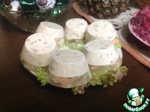 Вкусно!!! Красиво!!! Эффектно!!! Делала с обыкновенным желатином. Все удачно схватилось. Из красной рыбы у меня горбуша и кета. В следующий раз буду брать один сорт красной рыбы, т. к большой разности во вкусе я не почувствовала. И намучилась с судаком, колючий зараза!