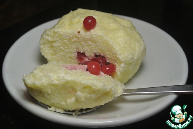Вкусный диетический пирожочек. У меня с красной смородиной. Делала без сахара, любители сладкого посыпали сахарной пудрой сверху готового пирожка.