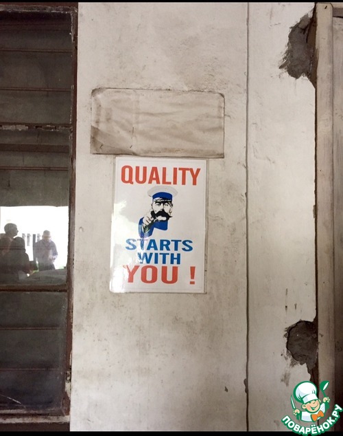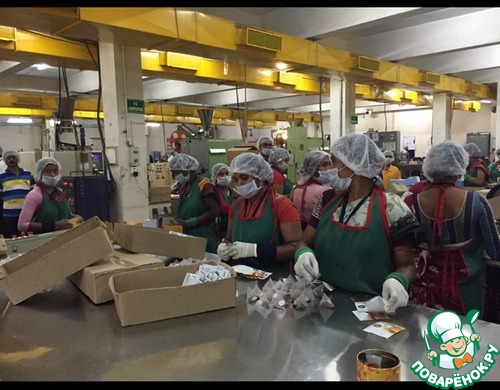 Чистота. Женщины, одетые в форменную одежду. Да, перед входом в цех стоит проверяющий и следит, чтобы все сняли украшения. Продезинфицировали руки. Есть при входе специальная кабинка, в неё заходишь и из пульвилезатора распыляется дезинфектор! Ощущается не сильно. Как изморось. Все. Дальше можно заходить в цех. А там...