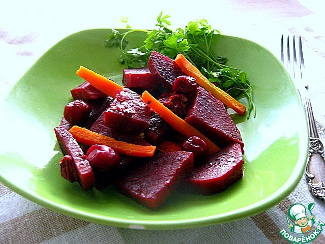 Невероятно ароматная , пикантная и вкусная получилась свеколка ! Вместо бальзамика -вишневый уксус, часть вишни размяла, часть оставила целой -она таааакая вкусная получилась.