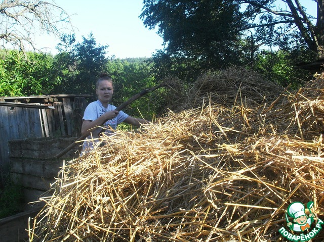 Лето в селе это куча работы!Запасы,запасы и еще раз запасы.Вот и нам пришлось приучиватся заготавливать все и вся.Как я уже писала,перед домом у нас поле,Засеяно в этом году было кукурузой.А соседнее-пшеницей.Вот пшеницу убрали,осталась солома.А солома это ценная подстилка нашим хрюнам.Вот и мы,вооружившись кто чем,собрали солому.Дочки приехали помогать.