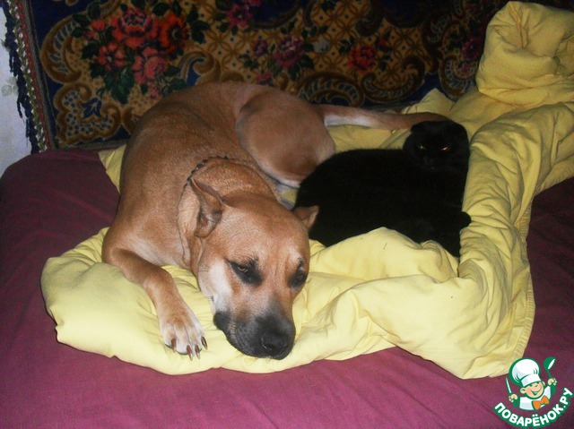 На ночь уходил на охоту,а под утро,как штык,под дверями.И сразу под крыло к Норе.Облокотится на нее и сидит с закрытыми глазами.Муж всегда говорил:"Свет,твоя рыжая харя пришла.Иди корми его,а то если б не Нора упал бы в голодный обморок!"