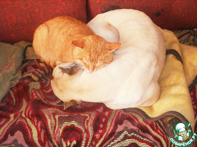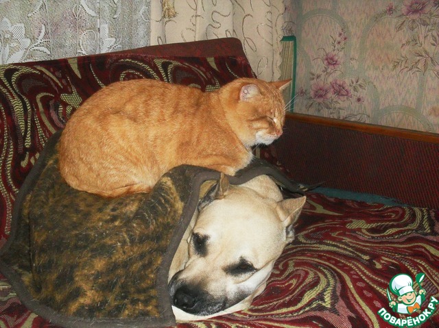 [cut] Рыжий так плавно вошел в нашу жизнь,что никто и не сопротивлялся.Особенно собаки.Такое впечатление,что он жил с нами все время.Очень интеллигентный кот!Ласковый,не наглый,не требовательный!Очень любил наших собак.