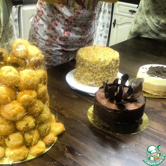 Школадный и Крокембуш потом пекла на Новый год, ну и апельсиновый чизкейк: