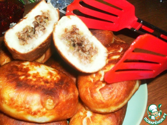 Мне очень нравится,когда в тесто добавляется крахмал.Именно этим и привлекли меня эти пирожки.Но и это было не все!Оказывается,это именно ТАКОЕ тесто,о котором я помню еще с детства!!!Я всегда пыталась найти такой рецепт и ...оооо,счастье!Виолетта,как говорится,сама мне его преподнесла на блюдечке!За что ей,отдельное,огромное спасибо!!!Пирожки,действительно получились воздушными!Начинку я взяла самую простую-с мясом.Мне главное было испытать тесто.Но я уверенна на все 100%,нет даже на 1000%,что начинка Виолочки намного вкуснее-с копченой рыбкой.