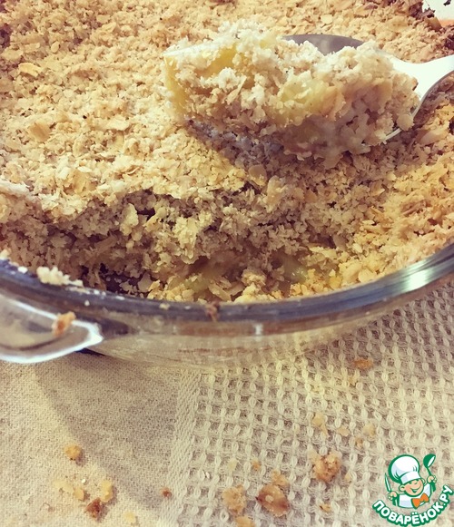 А вот это мое открытие. Хлопья превращаются как будто бы в крошку печенья, а снизу-запеченные яблочки. Бесподобный десерт-особенно если учесть, что в нем нет муки, яиц, и почти сахара почти