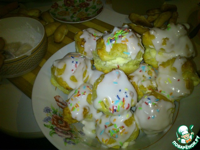 Люблю заварное тесто. рецепт очень удачный. получилось все отлично. пекла на день рождения дочки- скушали и хвалили.да.это же вместо торта -дочка захотела порционные пирожные. и совсем не плохо получилось! равноценная замена торту.