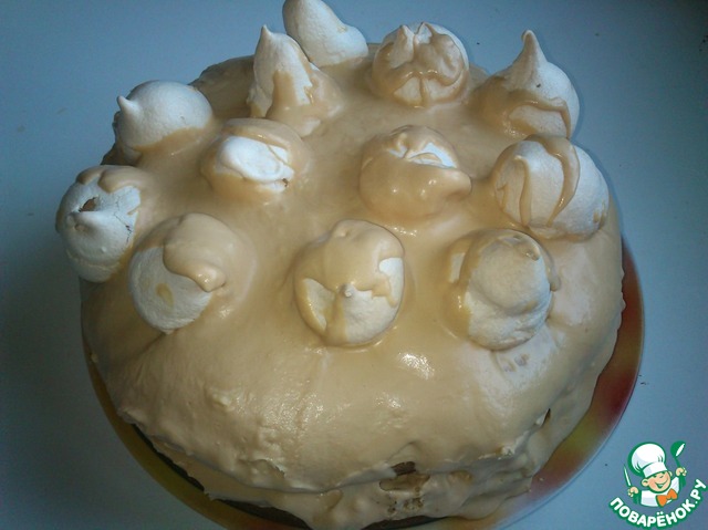 Безе. правда в этот раз я первую порцию запорола. поэтому его поменьше, чем требуется по рецепту. и тем не менее-вкусно.