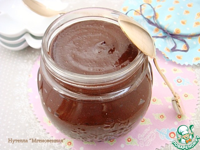 Нутелла "мгновенная" по рецепту mnnn готовится, действительно, мгновенно. Сначала слегка пробила блендером молоко, сахарный песок, какао, ванилин и сухое молоко. Затем постепенно вливала масло виноградной косточки, хватило 200 мл. Добавила полстакана арахиса и хорошо пробила массу блендером. На следующий день после приготовления паста стала еще вкуснее и насыщеннее.