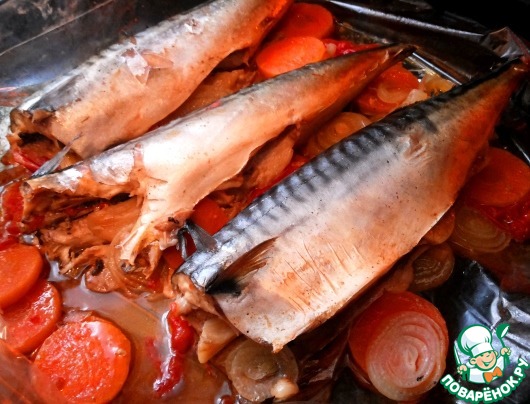Скумбрия с овощами в рукаве Готовила по своему рецепту, такого на сайте не нашла (скумбрию приправила солью, перцем, чесноком, затем в рукав для запекания, туда же отправила морковь, лук репчатый, помидоры, лимон и в духовку). Советую приготовить! Очень вкусно, сочно, ароматно!