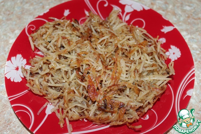 Как и написано в рецепте, картошечка получается полусырая, напоминает вкус драников
