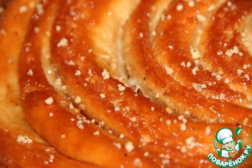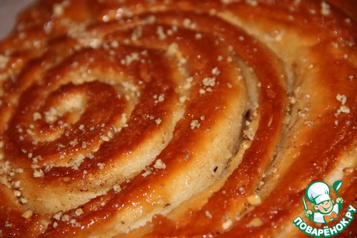 Шотландский спиральный пирог (ссылка - https://www.povarenok.ru/recipes/show/121109/#dopphotos). Спасибо автору за столь вкусный пирог! Тесто нейтральное (по мне в тесте не хватило сахара), но когда тесто потребляется вместе с корочкой карамельной - вкус то, что надо! Карамельная корочка действительно вкуснющая, со сливочным привкусом... Я бы так и ела карамельный верх... В начинку я добавила измельченный грецкий орех и в следующий раз увеличу количества продуктов для начинки, ее получается мало на срезе, еле видна. В приготовлении не сложен. [cut]