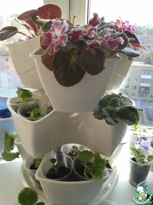 На выставке были куплены листочки фиалок различных видов, они дали детки и в результате получилось вот что