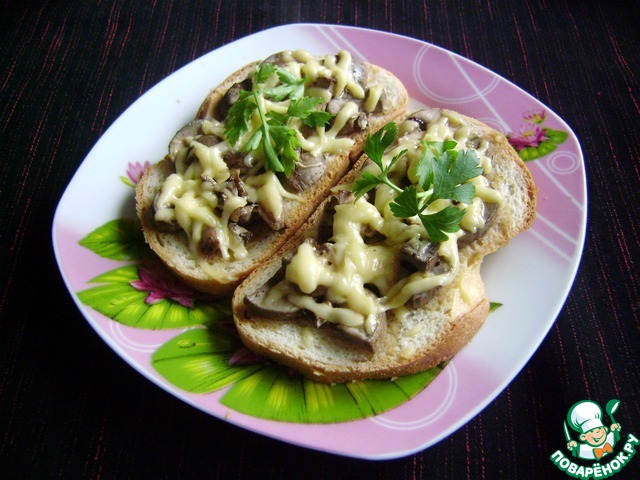 Ожидаемо очень вкусно. В последнее время бутерброды с шампиньонами у меня в фаворитах. Грибы кипятком не ошпаривала и запекала в духовке.