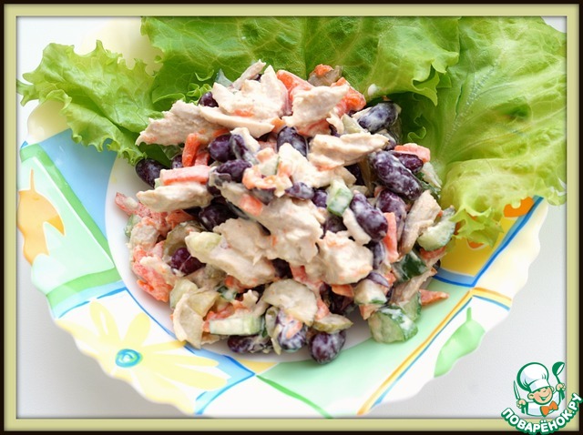 Салат "Околица" от кулинара elena_110. К сожалению автора давно нет на сайте,некому сказать спасибо.А салат действительно вкусный,хорошее сочетание мясо и фасоль.У меня вместо говядины свинина.
